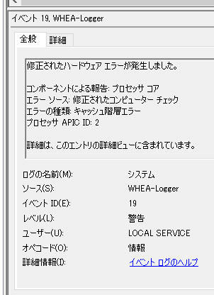 修正されたハードウェア エラーが発生しました。